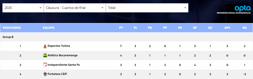 Tabla de posiciones del grupo B previa a la jornada sabatina:
